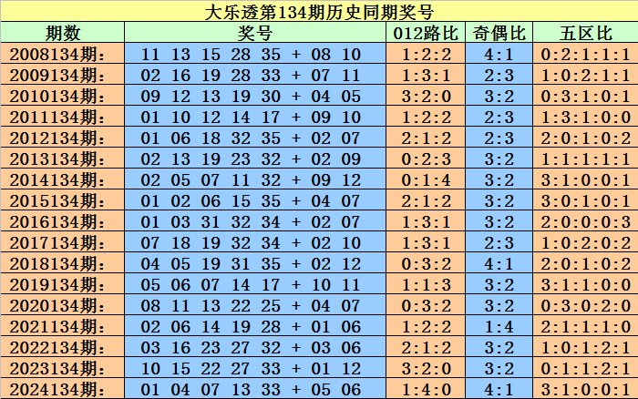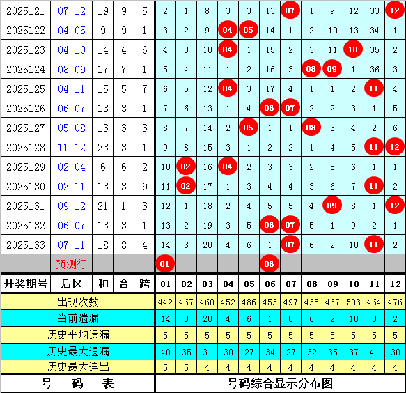 小霸王大乐透第2025134期历史同期后区定位分析