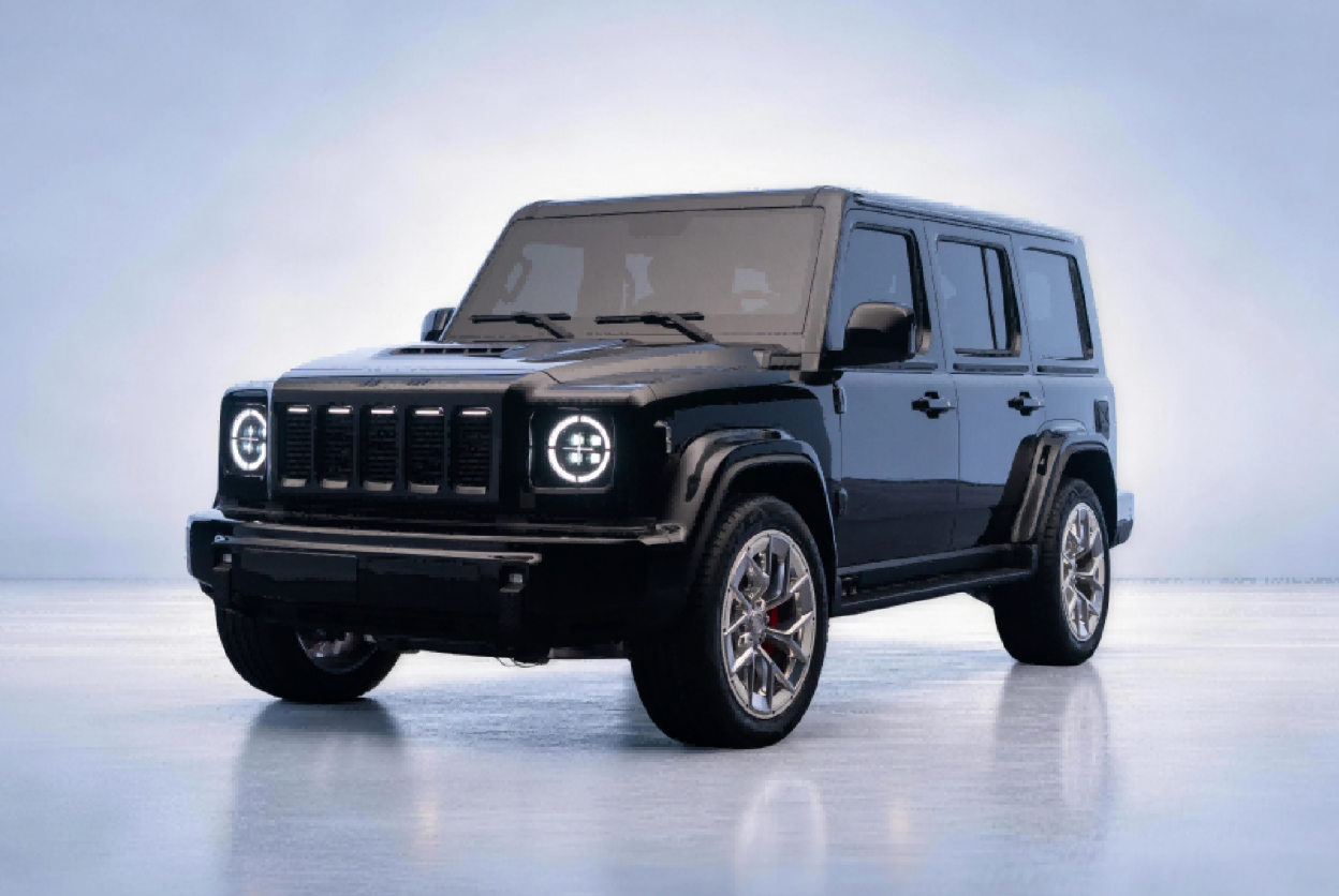 另一款车型就是国产“路虎卫士”——城市猎人。城市猎人是北京越野重启的经典车型,此前BJ40就推出过城市猎人版,想要打造兼顾城市和越野的多面手,采用公路胎并且取消了前后差速锁等配置,但效果并不理想,主要原因还是用户对内饰工艺、NHV、油耗的一些反馈不太积极,毕竟带大梁的纯正越野车很难兼顾舒适性与燃油经济性。这次全新的城市猎人就是打造一款城市为主且也有不错的越野性能的车型。虽然都是方盒子造型,但是城市猎人并非追求极致的越野性能,而是打造豪华与越野的平衡,从外形看也能看出它和北京81的显著区别。